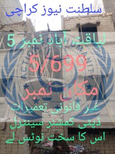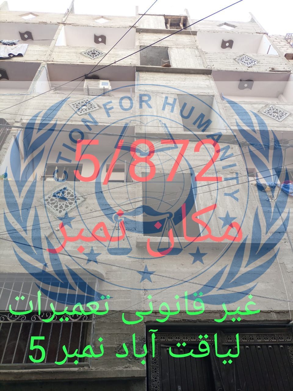 To help eradicate corruption, lawlessness and violations of human rights, Action for Humanity organization in hereby share sensitive and important information to Pakistan Rangers Sindh, Pakistan Rangers Sindh FS Wing, Inter Services Intelligence ISI, Federal Investigation Agency (F.I.A), National Accountability Bureau (NAB) , Anti Corruption Establishment, Chief Minister (CM) Sindh, Governor Sindh, Prime Minister Delivery Unit(PMDU) Illegal construction has been carried out in Liaquatabad District Central of Karachi with the help of Sindh Building Control Authority and some other government and private associates with the assistance of SBCA Building Inspector Zia Kala and his associate and relative Kamran Mirza along with notorious people. As per sources, they are well connected to MQM London and involved in activities that must be monitored. There have been several reports by Intelligence agencies about this corruption and gains from illegal activities in Liaquatabad area and these culprits ignored those reports. Residents are helpless and mute witness to this injustice and human rights violations. DG Pakistan Rangers Sind, Rangers FS Wing, ISI, IB ,Federal Investigation Agency and other law enforcement agencies should take up this sensitive issue of using money against the larger interests of Pakistan. Action for Humanity is always here to help and guide law enforcement agencies as per requirements.